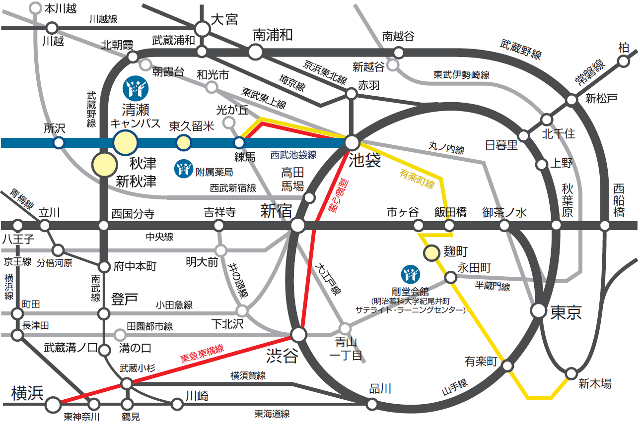 | 西武池袋線「池袋」駅 | 西武池袋線「秋津」駅/約25分 (準急利用) |