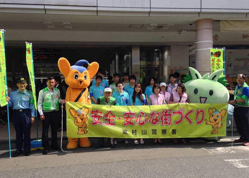 本学の地域学生連携委員会は、東村山警察署の方々や清瀬のボランティアの方々と共に「痴漢撲滅キャンペーン」に参加いたしました。1年生から6年生までの学生ボランティアが参加し、安全・安心な街づくりのためのチラシ配りや宣誓などを行いました。また、東村山市の妖精ひがっしーも駆け付け、共に活動してくれました。