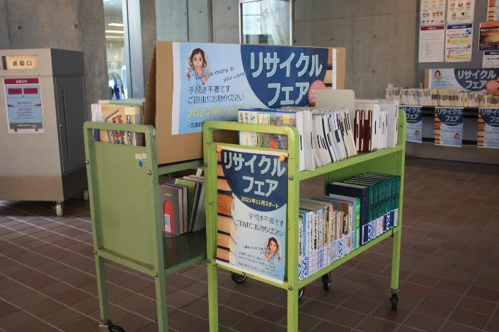 「リサイクルフェア」は、本に親しんでいただくとともに資源の有効活用を図ることを目的として、保存期間を過ぎた雑誌、除籍図書などを提供する取り組みです。