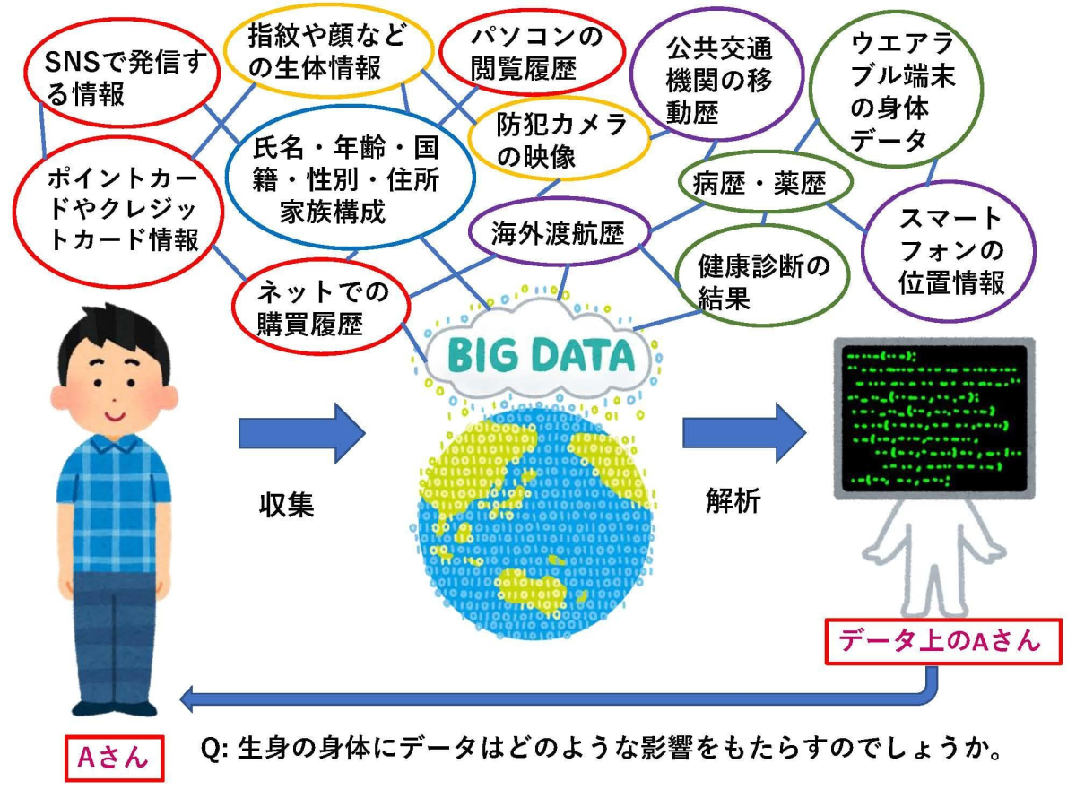 現代社会を言い表す社会学の用語に「監視社会」があります。ここでの「監視」とは、デジタル技術を通じて収集されたデータを何らかの目的で、調査・分析することを意味しています。現在、スマートフォンの普及により、多くの人が常にオンラインの世界と繋がるなかで、SNSへの投稿・閲覧、ネットショッピングの履歴、GPSによる位置情報などの「ビッグデータ」と呼ばれる膨大なデータが、私たちの日常生活のあらゆる場面で収集・利用されています。ビッグデータはこれまでおもに企業のマーケティング、感染症の流行予測、テロや犯罪の防止といった予測や予防に使用されてきました。しかし、近年では個人の考えや行動を操作・修正するために使用できることが明らかになり、世界的に問題となっています。