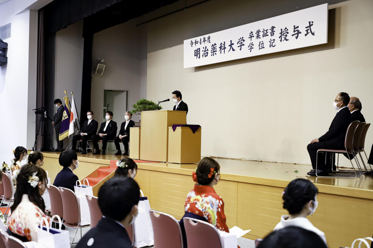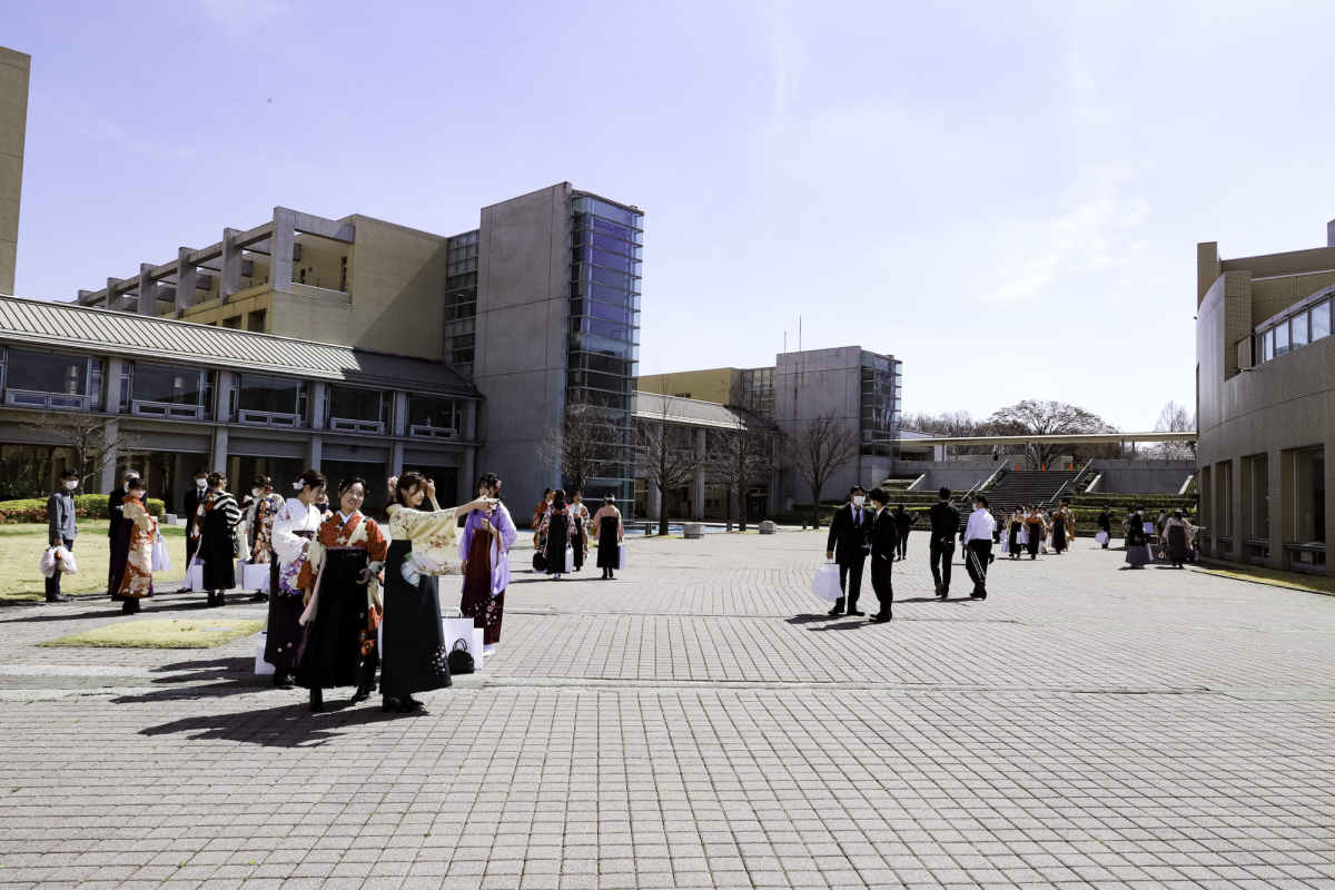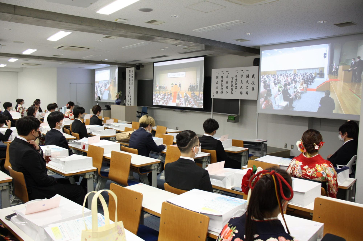 令和5年3月16日(木)、本学清瀬キャンパスの多目的講義室、総合教育研究棟フロネシス講義室にて、令和4年度卒様式を執り行いました。昨年に引き続き、新型コロナウイルス感染症拡大を防止する観点から、式典の参列者を卒業生と修了生のみに限定し、保護者のみなさまには参列をご遠慮していただきました。式典の様子をインターネットでライブ配信でご覧いただくことにいたしました。