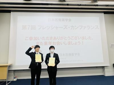 本学大学院生と学部6年生が、日本医療薬学会第7回フレッシャーズ・カンファランスで優秀演題発表賞を受賞しました