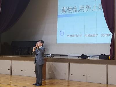 2024年(令和6年)10月28日(月)、清瀬市立清瀬第二中学校において、本学の宮沢伸介講師(薬学教育研究センター 臨床薬学部門/地域医療学)が、1年生149名に向けて薬物乱用防止の講演を行いました。講演では、一人ひとりが心の中にある「ブレーキ」で薬物を誘われても絶対に断る勇気をもつことの大切さを伝えました。さらに、薬物乱用が社会や家族に与える影響にも触れ、薬物の危険性や身体・精神への影響について詳しく説明しました。