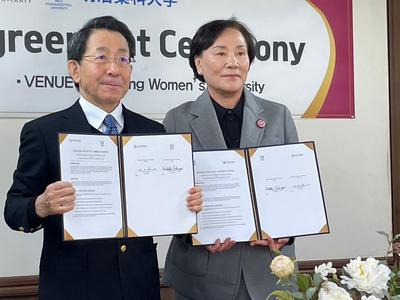2024年(令和6年)11月8日(金)に本学は韓国のDuksung Women's University(DSWU)と学術連携協定を調印しました。DSWUは1920年にソウルで設立された総合大学です。多くの留学生を受け入れており学部学生の総数は約5,000名です。今回の学術協定締結は、本学の医療分子解析学研究室、植沢芳広教授とDSWU薬学部Joohee Jung教授の共同研究が契機となって実現しました。