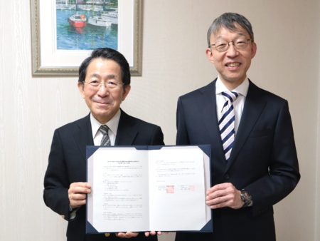 (左)明治薬科大学 越前宏俊 学長 (右)豊島病院 畑明宏 院長