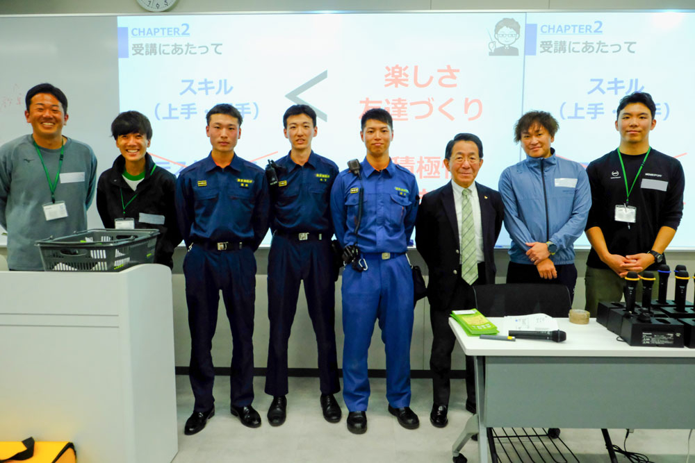 左から、長久保講師、小宮講師、清瀬消防署員3名、
