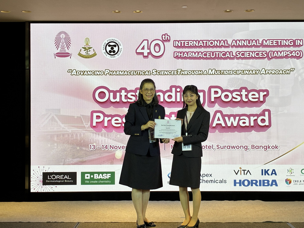 2025年(令和7年)11月13日(木)〜14日(金)にタイ・バンコクで開催された40th International Annual Meeting in Pharmaceutical Sciences (IAMPS40)において、本学薬学科4年生の和久 陽南子さんがBest Poster Presentation Awardを受賞しました。