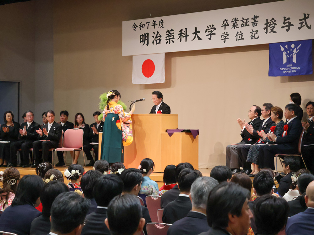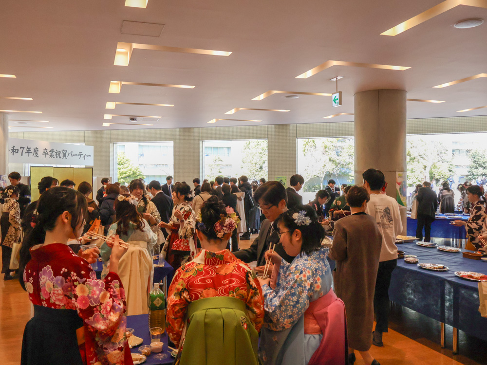 2026年(令和8年)3月12日(木)、本学多目的大講義室において「令和7年度 卒業証書・学位記授与式」を挙行いたしました。ご参列いただいたご家族の皆様には、別会場にて式の様子を中継でご覧いただきました。式典後には卒業祝賀パーティーも開催され、卒業生の新たな門出を祝いました。