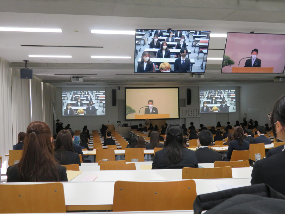 令和5年4月3日(月)、令和5年度入学式が挙行されました。新型コロナウイルス感染症拡大防止に留意して、多目的講義室他3会場で挙行いたしました。今年度からは、保護者1名のご参列と在学生によるサークル勧誘活動(1サークル4名まで)が許可されました。大学にもコロナ禍前の活気が戻りつつあります。入学式の様子はYouTubeで配信をしました。ご参列いただけなかった保護者にご覧いただくことにいたしました。