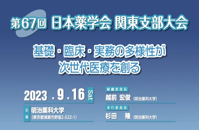 第67回日本薬学会関東支部大会は盛会をもって終了しました。たくさんのご参加ありがとうございました。