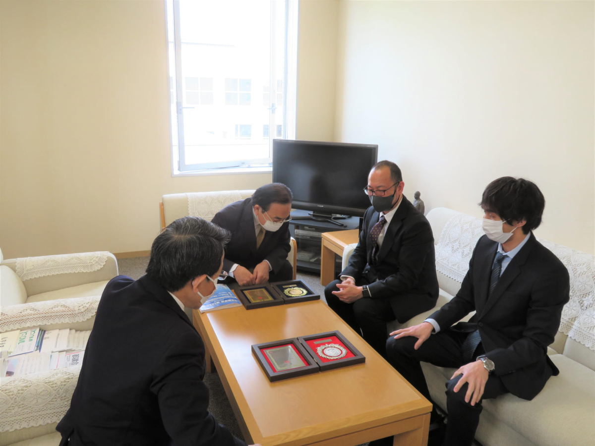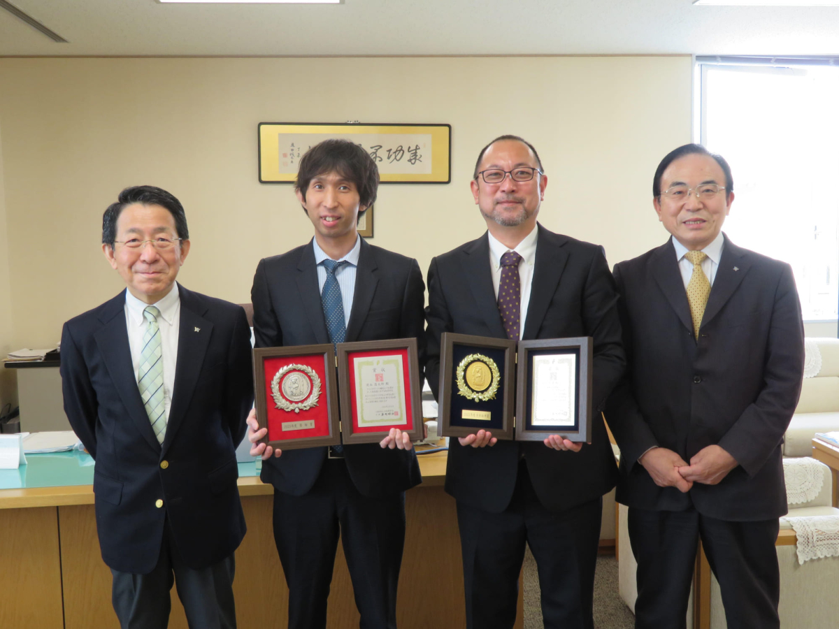 山中正道教授(薬化学研究室)が学術振興賞(第1A 部門)、道永昌太郎講師(薬効学研究室)が奨励賞を受賞し、2023年3月25日~28日に北海道大学にて開催された日本薬学会第143年会にて楯が授与されました。佐川賢一理事長、越前宏俊学長に受賞の報告を行いました。