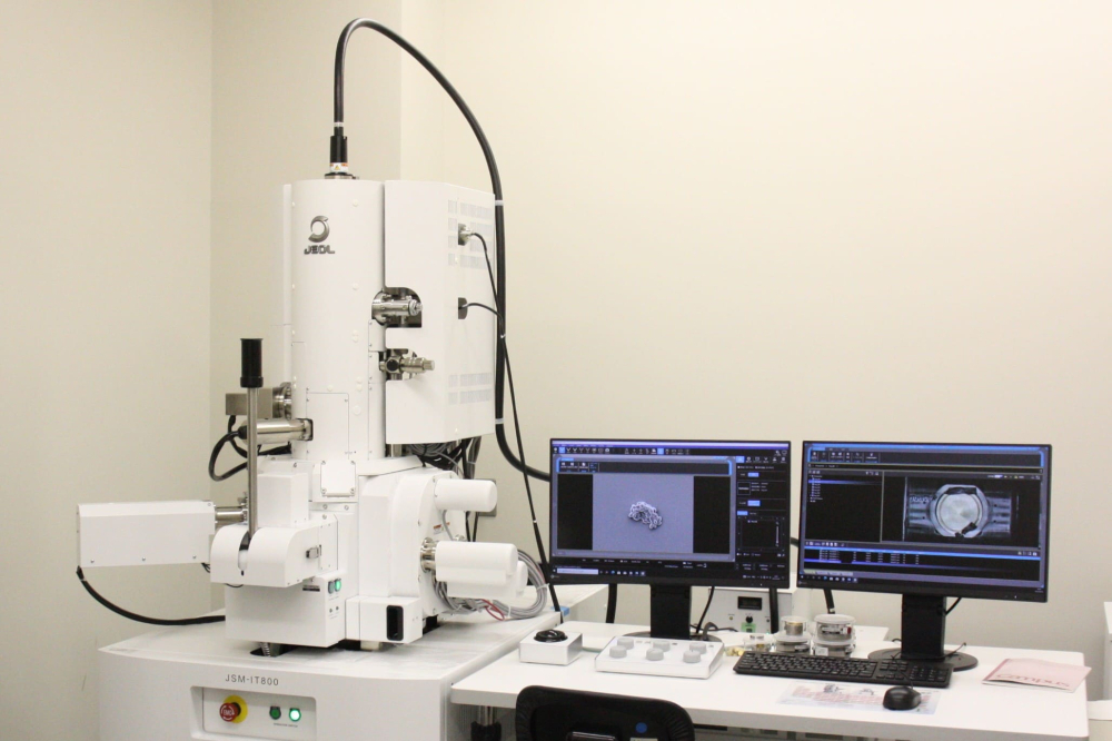 数ナノメートル(nm)から数マイクロメートル(μm)までの微細構造を群細に観察できる装置です。